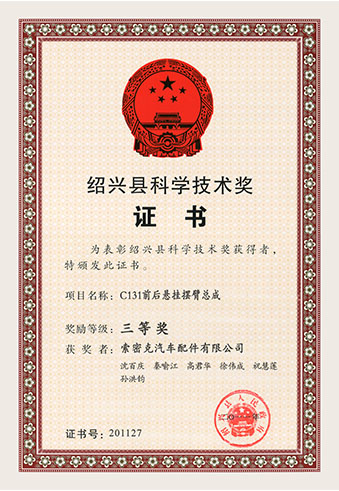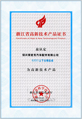 公司已先后通過IATF16949質(zhì)量管理體系認證、ISO/14001環(huán)境管理體系認證和OHSAS18001職業(yè)健康安全管理體系認證。是“國家高新技術(shù)企業(yè)”“行業(yè)龍頭企業(yè)”和“全國百家優(yōu)秀汽車零部件供應(yīng)商”。